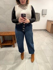 Love the buttons and color of the jeans. Very easy to style and got a lot of wear out of them. My only complaint is the top has absolutely no give and it could start to feel tight as the day went on.