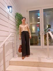 I got a ton of compliments on this shirt when I wore it on set for the TV show I work for! I did get a size larger hoping I’d have some extra space, but I am renting again in a smaller size and I might even buy this gem! I thought from the photos that it would look too stuffy on me and I was pleasantly surprised that I was able to make it look young and modern.