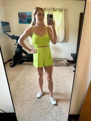 This was such an adorable neon tank. I wish it was a tad bit longer. As pictured on the model, it's a more cropped tank. So when renting, be prepared for the tank to be cropped as pictured.