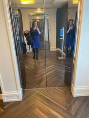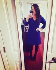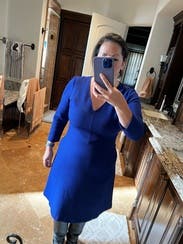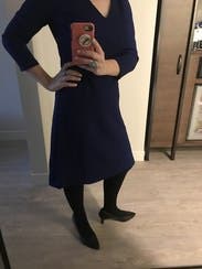 I didn't get a chance to take a proper photo, but put in a silly one anyway because I love this dress. It is a beautiful color, is well made, and is very flattering. I love a good dress with sleeves for cooler weather. Thought about buying this one!