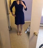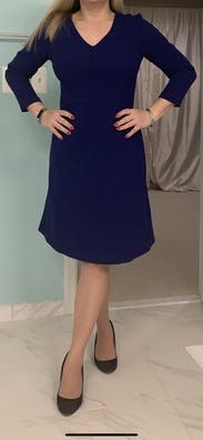 Wore this dress to present at a conference and it was perfect! The bodice fitted well and I liked the flare to the skirt, rather than a pencil silhouette. I styled it with black tights and blocky heels. I opted for blocky heels since I was walking on stage but I think a pencil heel would look better. I did wear tummy shapewear since the bodice was a little snug when I tried it on at home.