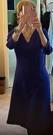 This dress got so many compliments at a conference. The color is luxurious, and the fit is very flattering!
