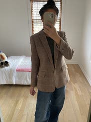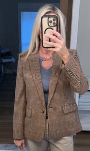 Love this Blazer! Excellent quality and size. I love the colors for fall. I wear it with suit pants or Jeans. I will hold on to this all fall! Also, nice and warm, no itching. Wearing Size 2.