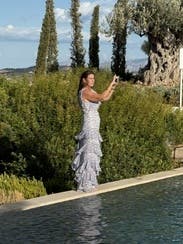 Worn for my wedding anniversary. My husband LOVED this dress and even suggested I buy it. I wore it because he thought it was beautiful, but it was a little loose in some places.