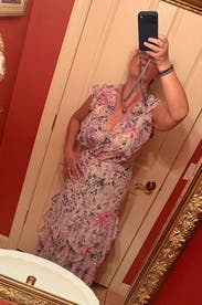 I loved the floral design, lightweight material and ruffles! The only downside was that I constantly felt like my chest was going to be exposed, even with tightening the neck as much as possible. Highly recommend using fashion tape when wearing!