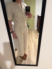 You'll have to steam this because it's linen but it was a comfortable, super cute jumpsuit. I love that you don't have to phone a friend to get in and out of it.