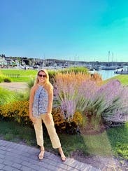 I wore this lovely top to a casual baby shower. The fabric is linen and very light weight for those hot summer days. My only advice is to have your steamer ready. Because this beauty is linen, she wrinkles quite easily.