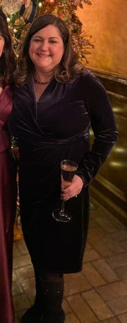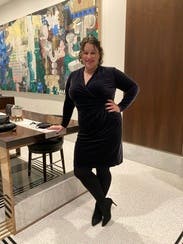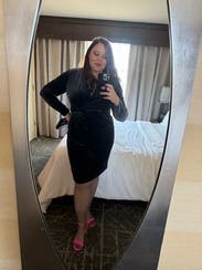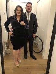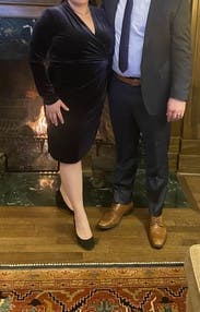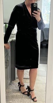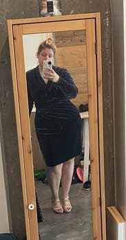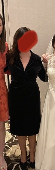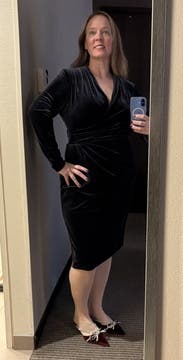 Beautiful dress and nice color! Wish the fabric wasn't so bulky, it made me look a little wider than I wanted but I guess that's velvet for ya!