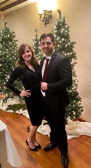 I rented this dress for a February wedding and it was perfect! I am 21 weeks pregnant, weighing about 150# and 34D bra size, otherwise athletic build. The dress for me great! I ordered a size 6 & 8 & ultimately wore the six. The stretchy material made for a comfortable evening! The 8 was longer & would have worked too but made me look a little boxy. I think this dress is meant to be a little more form fitting too so I wore the 6 and was comfortable! The velvet, long sleeves kept me warm too!
