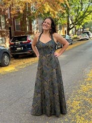 This dress was a total show stopper. I got compliments all night and felt like a million bucks. While it looks like a heavy fabric in pics, it is not at all. and tough to see in pics is the plaid underneath the floral brocade, giving it a sort of bohemian meets regal feel. It is on the long side, so I had to wear my tallest heels as I didn't have time to double-stick-tape up the bottom. My only complaint is that it didn't have pockets - which would be so easy on this dress!