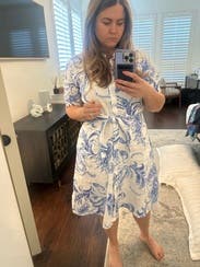 Cute! I probably could have gone down 1 size. If you’re between sizes you could go for the larger of the 2 sizes if you like a looser fit because the tie gives you a waist!