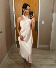 Wore this to a friends spring wedding and it was perfect! The tie around the neck really elevates the dress for a more formal look. I did size up, which if you want a looser look or have thicker thighs, I highly recommend.