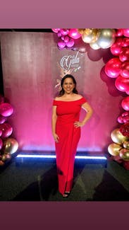 Red is definitely my color and I was getting compliments ALL night long on how much they loved the dress… living in Charleston, SC it’s very hot already. The dress is very thick so I did get hot fast from dancing but I would totally rent this dress again.