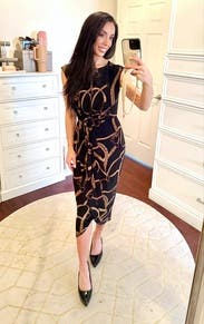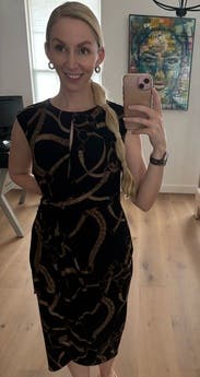 Got this for my work holiday party. It was a great combo of work appropriate while still making me feel dressed up and attractive. The waist tie is a great detail. It’s also a super comfy dress to wear. Plus it worked well in the cold with tights and a cardigan.