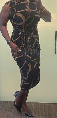 I normally don’t wear form fitting dresses but this one cut in all the right places. Got so many compliments at work and not to mention the earrings were RTR as well.