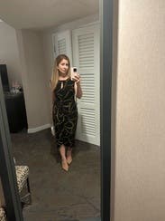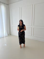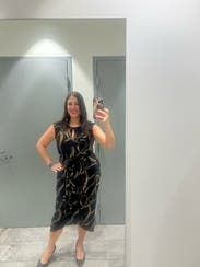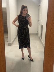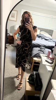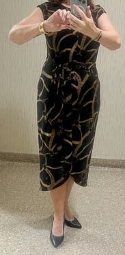 I really liked this dress. It fit well and was very comfortable all evening. The material was a little thin, but not enough to take away from the look. The print is beautiful and it photographed perfectly for a holiday event. I would rent this one again.