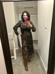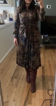 Paired this dress with brown leather boots and a beautiful brown leather purse to match. I would definitely order this dress / brand again!