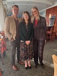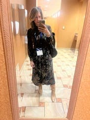 Simple and beautiful tie waisted dress I wore as a panel moderator. Was surprised at how thin it made me look!