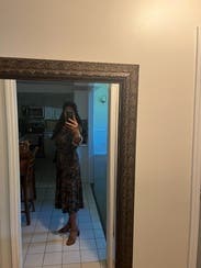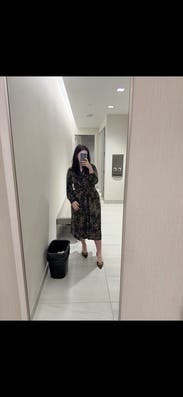 This dress is a huge compliment getter. The slinky stretchy fabric is super comfy and wrinkle free even when traveling. I ended up purchasing this. Fits true to size.