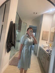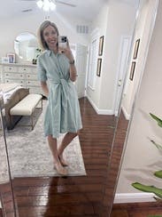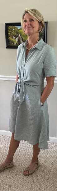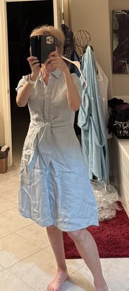 I wore this on my first day at a new job and felt confident and comfortable all day. The fit was true to size, and being a wrap dress made it super customizable to my shape. The linen fabric was perfect for the summer heat in South Carolina, but it does wrinkle easily, so keep that in mind. Overall, I loved it and got tons of compliments!