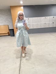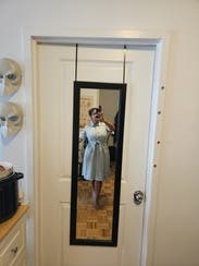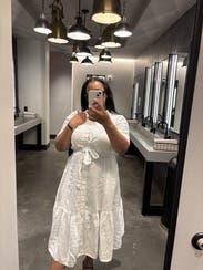 Loved this dress on, gave great shape with the tie waist. It was the perfect, comfortable dress for my aunts 50th wedding anniversary party!