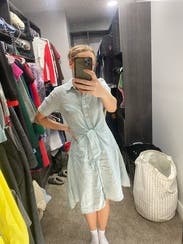 Love this dress, I actually own it in white so I knew it would fit. The light blue is so cute - and I can wear it anywhere.