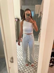 These are super cute jeans, but I didn’t like how they fit me. They are very high waisted which is fine, but I don’t necessarily love wide legged pants and these are. They were a little big in the waist but I don’t think a smaller size would have worked. But again, they were really cute!