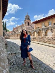 I wore this dress for a trip to a magic town in Mexico. Perfect hourglass dress! A bit big in the shoulders and just the perfect tight in the waist. For your reference my weight was 117 at that time.