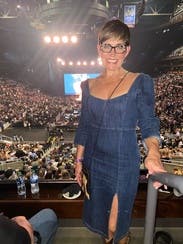 Perfect with cowboy boots for the Tim McGraw concert. Fit TTS with a bit of stretch. Didn’t hide my pooch and by the end of the night the shoulders were slipping off but overall comfortable and flattering.