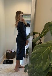 This dress is everything! If we’re going back yo Y2K vibes, this is the way to do it without looking like a costume. The neckline is so flattering, you don’t need a bra, and the slit isn’t too high not to wear shapewear. I’ve had it for more than a month, and I plan to buy it.