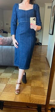 (For reference 5’7, 125pounds) Very comfortable and flattering dress. The Jean material was thick enough where I didn’t even have to wear a bra. Wore it to a horse race in Kentucky. :)