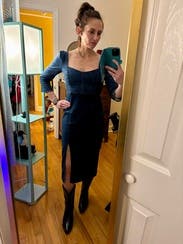 The shape was great for my curves, but I needed to wear Spanx to zip it around my bra strap, and the slit was so high I had to hike up the bottom of the Spanx, which was so uncomfortable on my thigh. I have fairly broad shoulders, yet the shoulders kept sliding down, and not in a cute casual way, more of a “you need to fix your dress” way. I did receive several compliments, but I couldn’t wait to take it off.