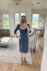 but, surprisingly , this one worked on me! I am petite and short and this dress hugged me in all the right places! Paired with a cream colored boot and a long cardigan for the early morning. Can easily wear sneakers with this for a more casual look. Cons, yea the shoulders do fall a bit. Nothing a little clothing tape couldn’t fix. Really liked this dress!