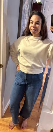 I love these jeans so much! They are soft, extremely comfortable, great wash for work and so very flattering. I am only 5’3” and the length is perfect. Renting these was such a fun way to try the barrel leg trend and I’m glad I did!