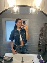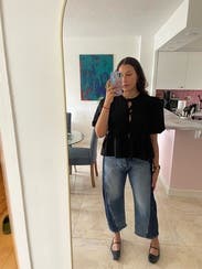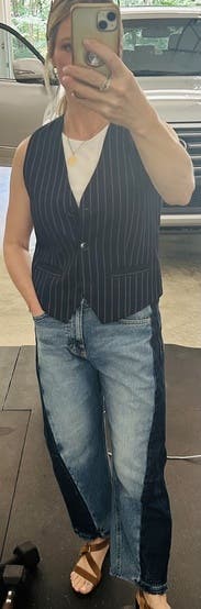 These jeans are comfy, stylish and cute. Easy to dress up or down. Would rent again just sized down as they run big