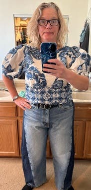 I was very unsure about these jeans but I found myself wearing them over and over. They are more stylish than I expected and felt cute and comfortable in them. Took a star off for the weird waist, which has buttons to tighten but the buttons go inside against your skin which is uncomfortable, and I often found one or both popped open throughout the day.