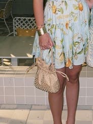 The Lele Sadoughi Pearl Sia Drawstring Bag brings a playful yet polished touch with its all-over faux pearl embellishment and compact silhouette. Carry it for an elegant evening look, or to add sparkle to your daytime ensemble.