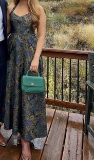 It was so refreshing to wear a bag that fit the necessities and then some! The color was a perfect green and loved that the long strap was removable. This was a great statement piece and I do plan to rent again.