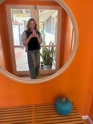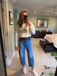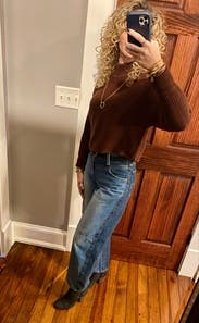 I got so many compliments on these jeans! I could’ve gone down a size. I love the two tone and the waistband is so cute.