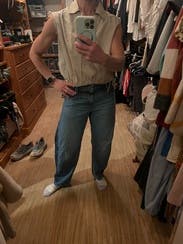 Loved these barrel jeans. Came brand new with tags still in place & I contemplated buying these as the 2-tone made them more versatile and unique. However, I didn't wanna commit as I am PP and in between sizes. Definitely may have to rent this one again.