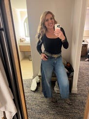 Absolutely loved wearing these and couldn’t take them off! I’m a 4/6 and rented the 27. They were slightly baggy and rode lower on my waist. They were cuffed at just the right place on my 5’7” frame and didn’t drag on the ground. They don’t enhance your shape much but the barrel leg is on trend. These are easy to dress up or down. I’ll probably buy them after I try the next size down to compare the fit.