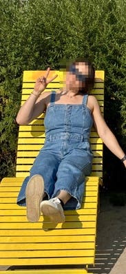 Very cute cut to traditional overalls. Wore once to casual event without shirt underneath and was very cute! Also used for minion costume as pictured.