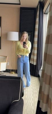I wasn't sure if I could pull off the wide leg look but these jeans made me feel so confident and cool. Prior reviews said to size up but I really should've gotten my true size. Renting them again in size 29.