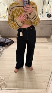 People were loooving these jeans! I was too, but will probably rent a size down next time & see. I got a 26 (i’m usually a 25 because I heard that levi’s denim can be stiff) Tight upon first few wears, but loosened up quite a bit. If you like the long/baggy look, these are for you!
