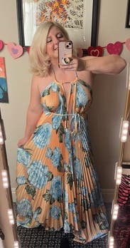 totally obsessed w this dress. Probably my most fav dress I've ever worn. Got so many compliments. So flattering and different. I should've sized down it was really big.