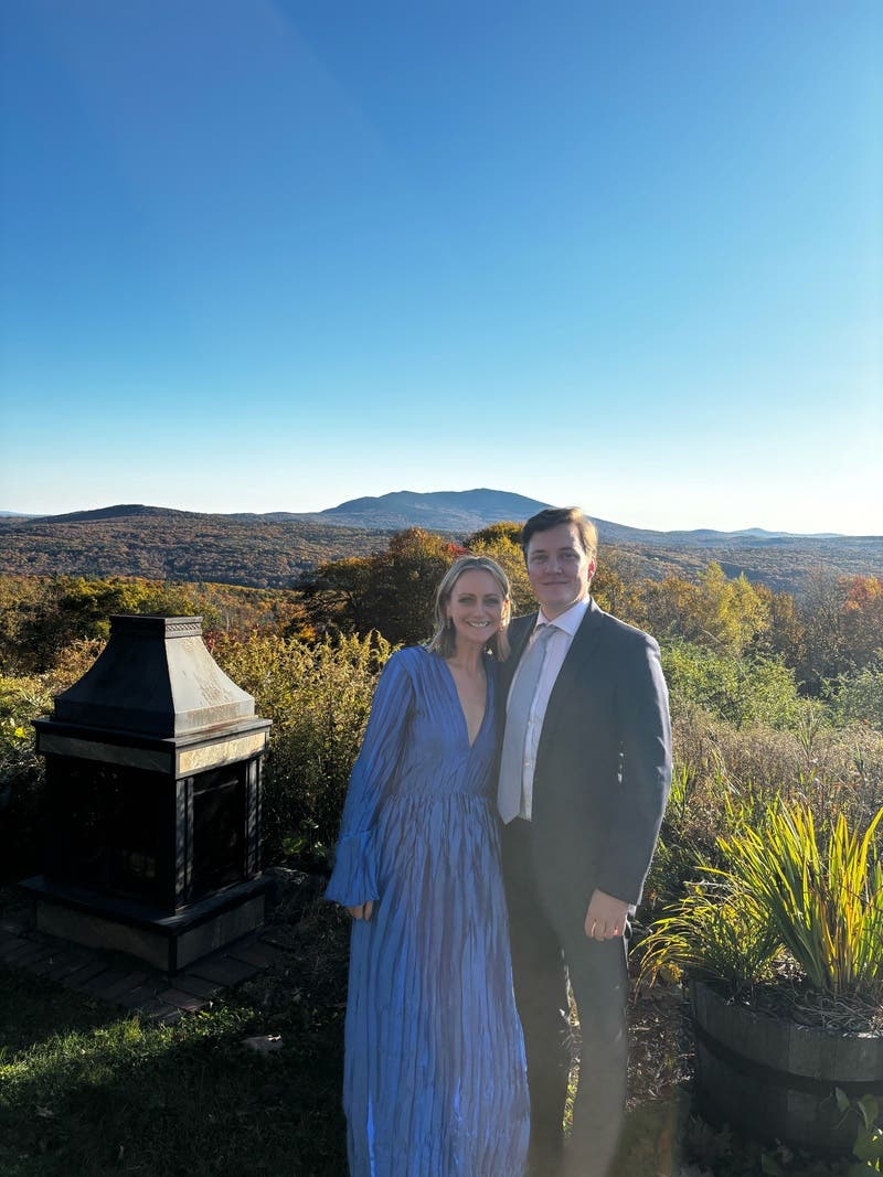 Blue satin (100% High-Grade Polyester). A-line. Long sleeves. V-neck. Back zipper closure. 55" from shoulder to hemline. Imported.