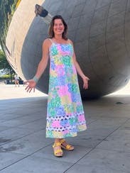 I wore this to my friend’s baby shower and got so many compliments from it! The square neckline is so flattering and modern, while the sleeveless design keeps you cool and comfortable. The midi length hits at just the right spot - elegant but not too formal. This dress is everything you want in a summer midi - fun, flattering, and effortlessly chic. But the colors especially on this dress make you look (and feel) more put together with a pop of personality.