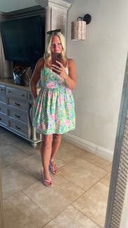 This dress was so easy to wear. Even though the cups were a bit small, I didn't wear a bra, and it looked and felt totally fine. I wore this on vacation and then to lunch after a spa day with friends. Perfect Lilly piece!