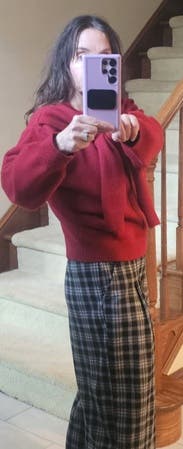 Didn't end up wearing this one. The wrap/tie front didn't lay right and was really bulky. Soft sweater though.