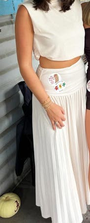 Love this set. I wore the skirt only a couple of times as it was really long on me but easily enough adjusted as I wore the skirt higher up and cinched it with a belt. Very comfortable even in Florida heat.